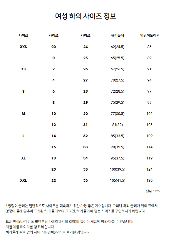 바지 안쪽 밑단부터 가랑이까지 길이(인심)