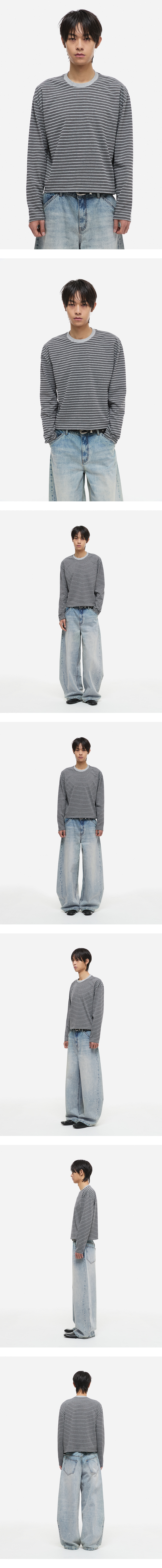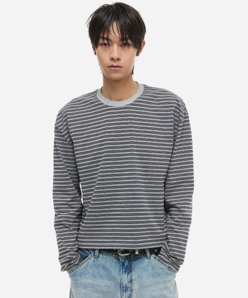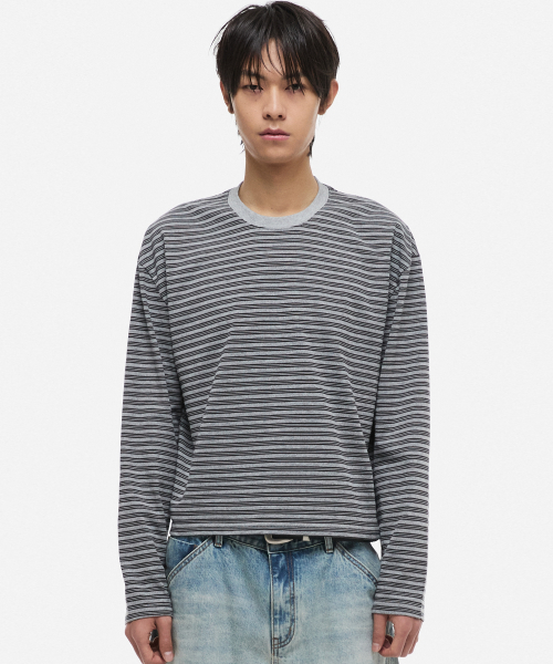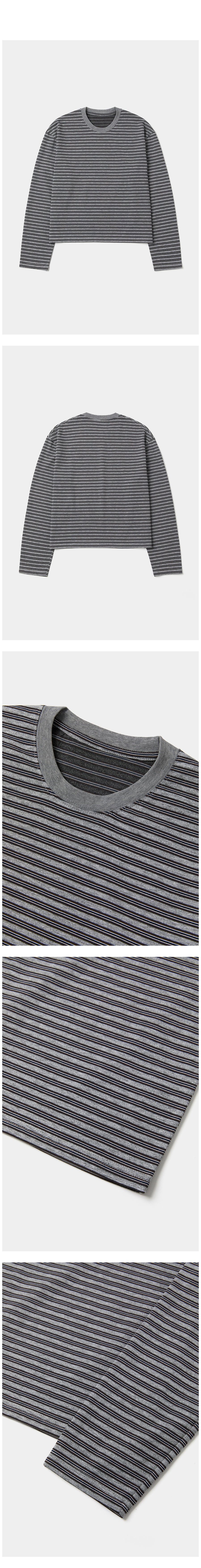 스트라이프 크롭 롱슬리브 그레이