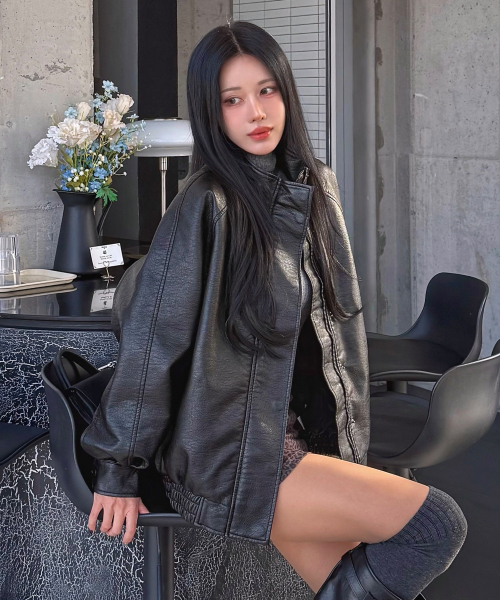 9229 오버핏 워싱 레더 자켓 (BLACK)