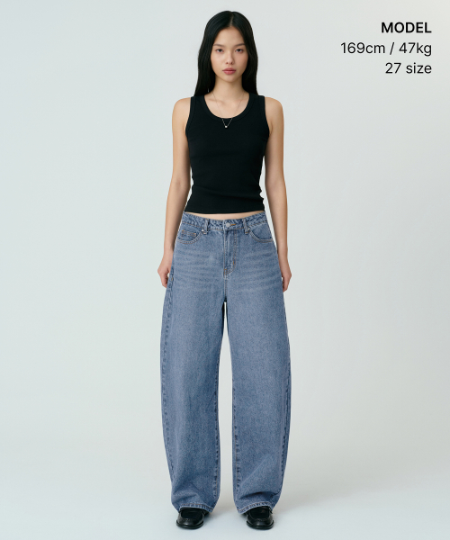 우먼즈 커브드 데님 팬츠 [라이트 인디고]
