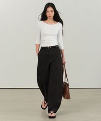 우먼즈 커브드 데님 팬츠 [워시드 블랙]