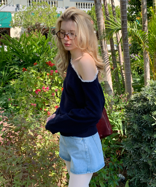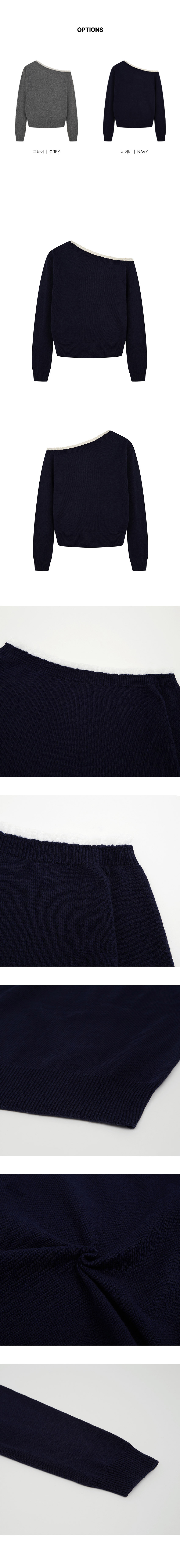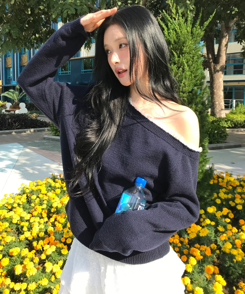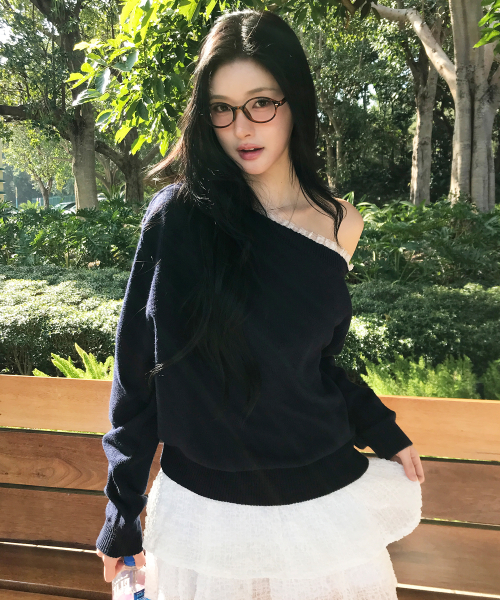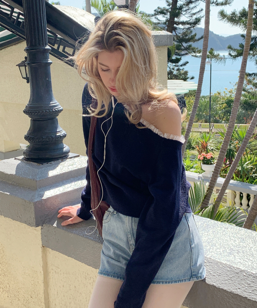 페이 레이스 원숄더 캐시미어 니트 ( 네이비 )