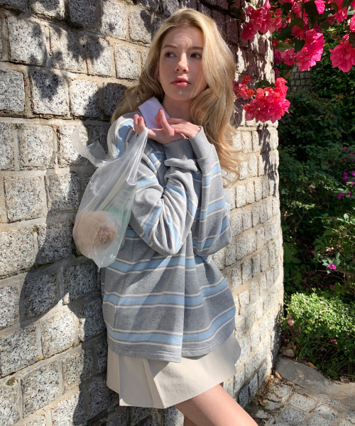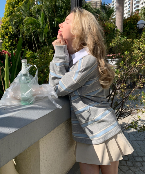 마틴 스트라이프 럭비 티셔츠 ( 멜란지그레이 )