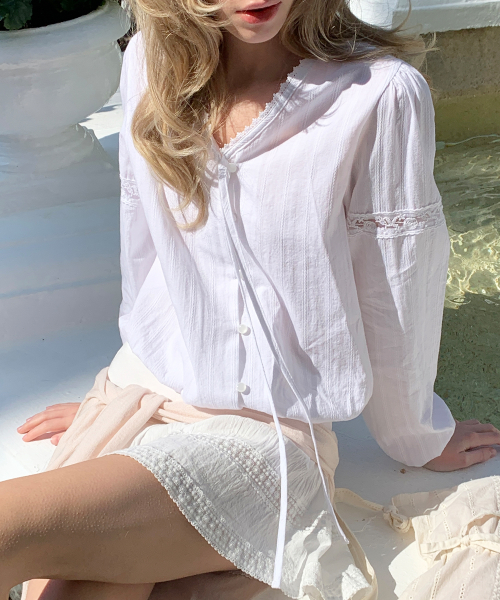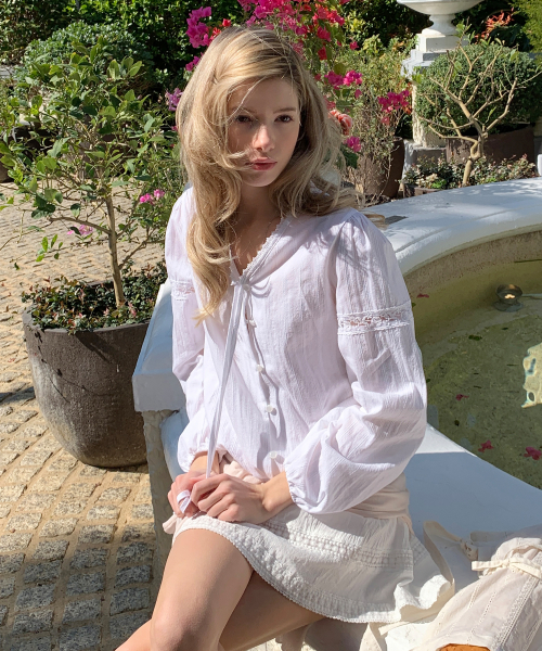 가든 레이스 밴딩 블라우스 ( 화이트 )
