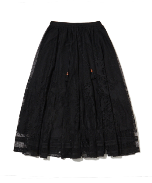 레이스 플레어 롱 스커트 블랙_FS1WS14F