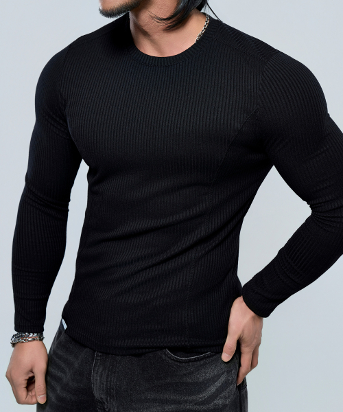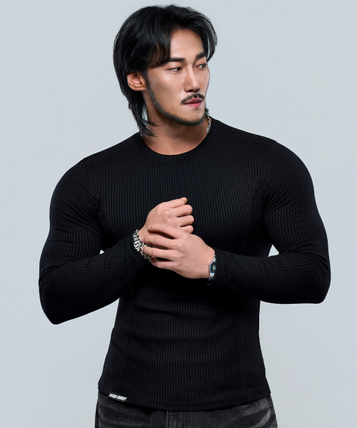 P2606 골지 카라 머슬핏 긴팔티 [2COLOR]