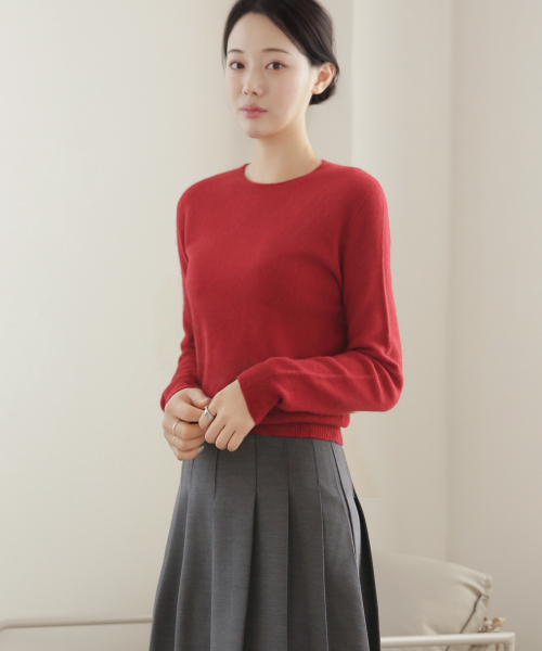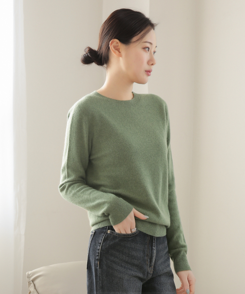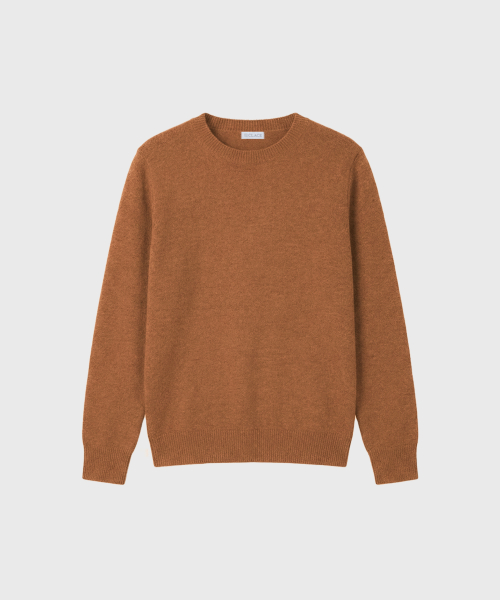 울 100% 라운드넥 니트 스웨터_브라운