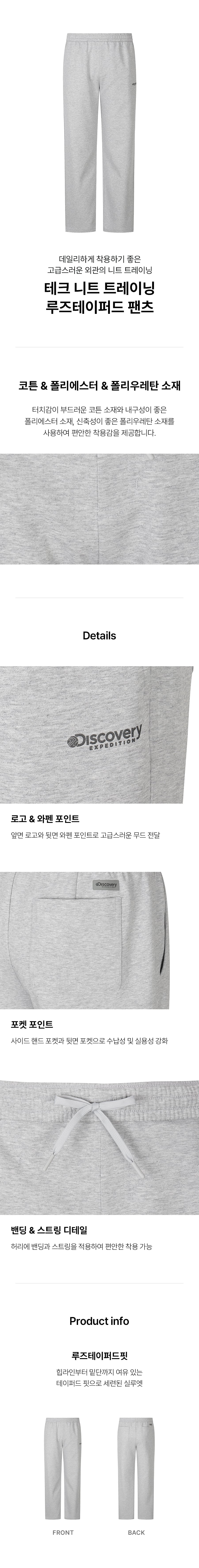 남성 테크 니트 트레이닝 루즈테이퍼드 팬츠 (M/GREY)