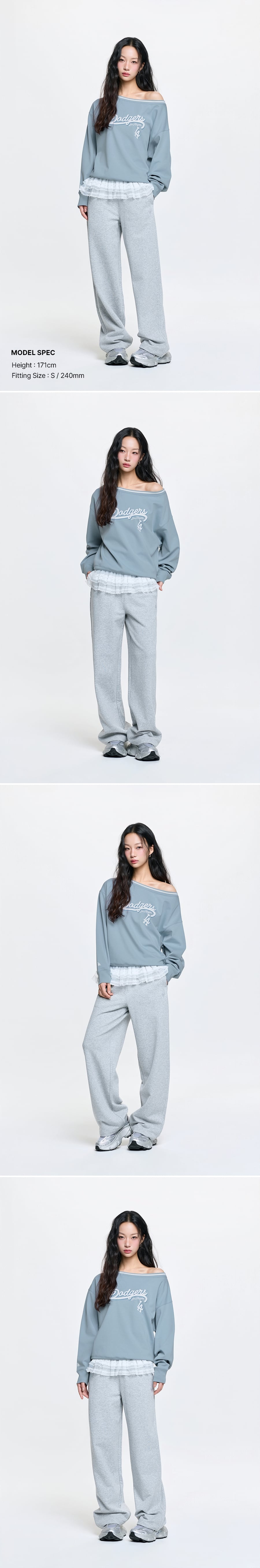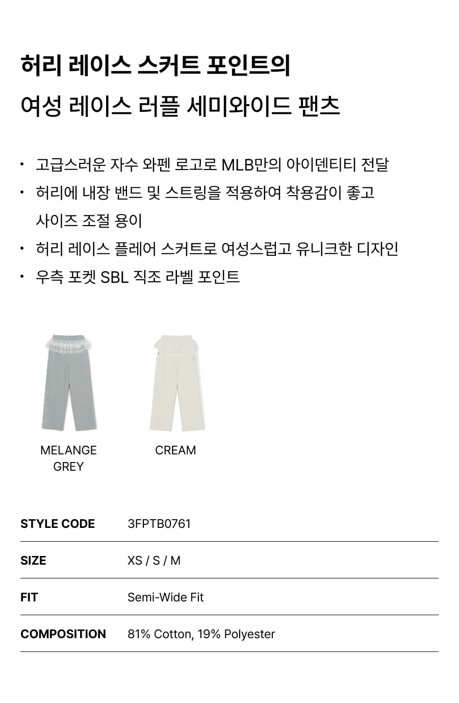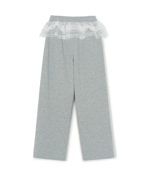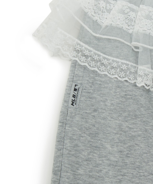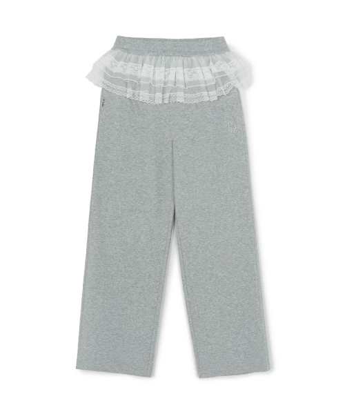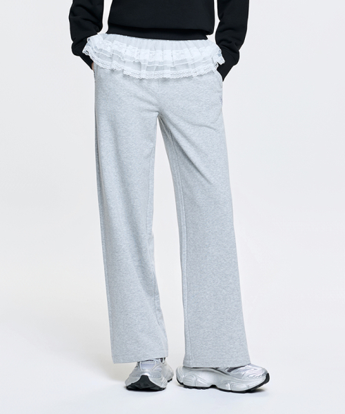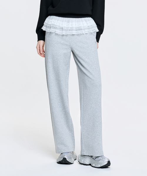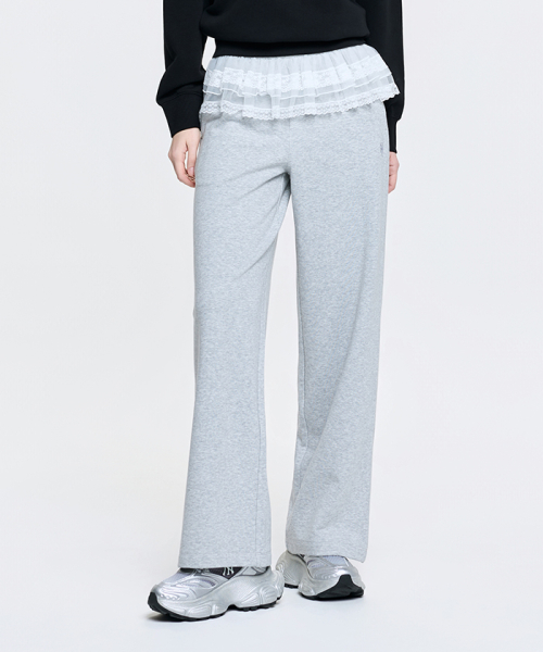 여성 베이직 레이스 러플 세미와이드 팬츠 NYM (Melange Grey)