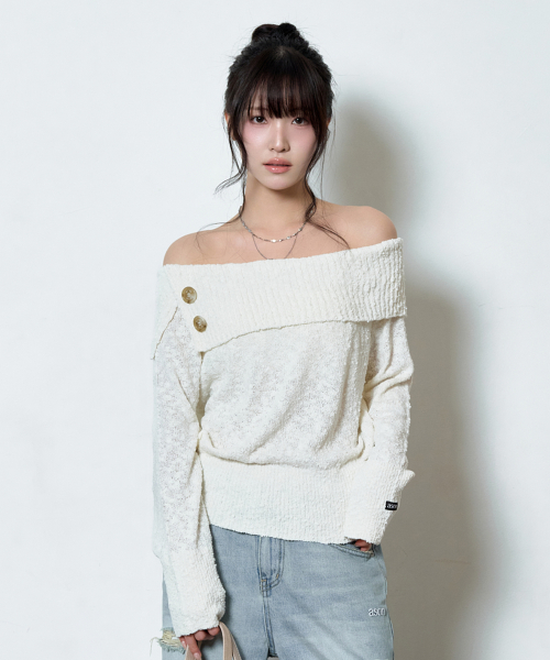 - 여유로운 실루엣의 오프숄더 니트