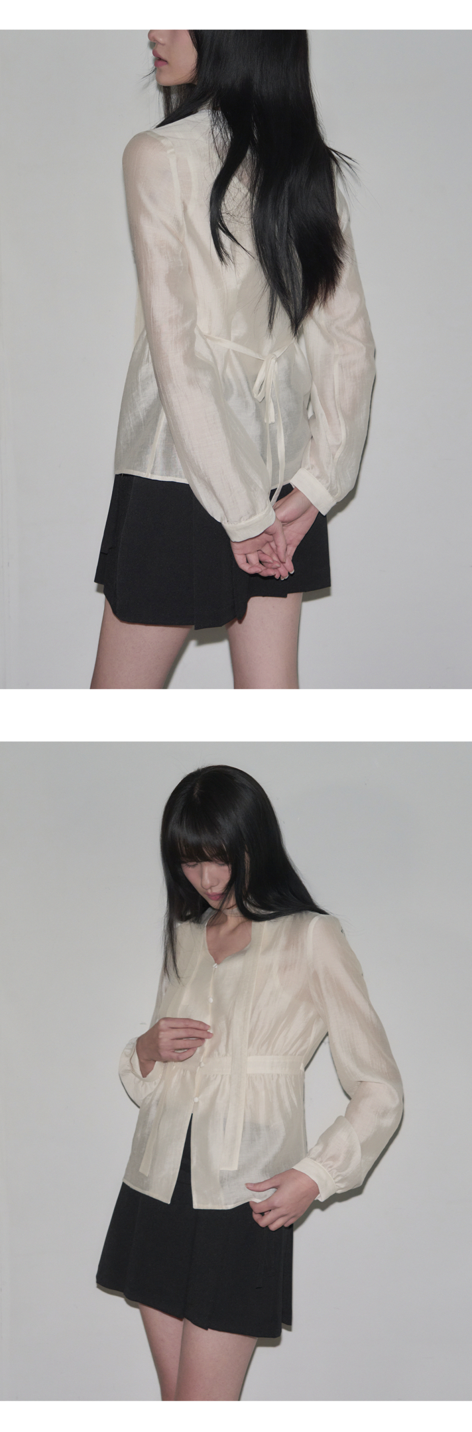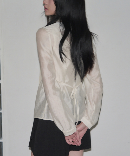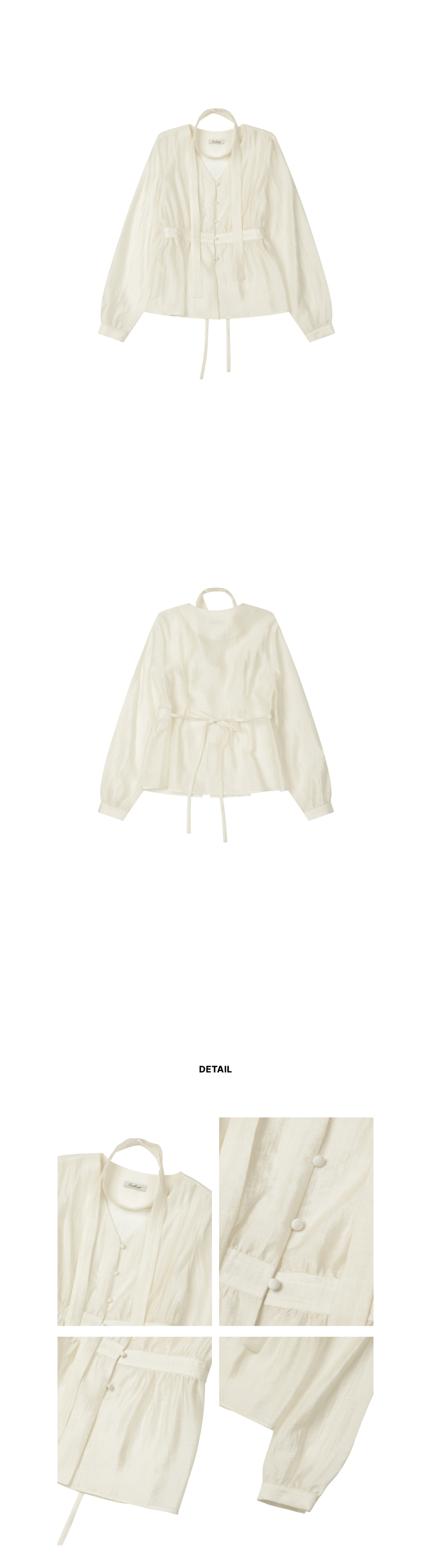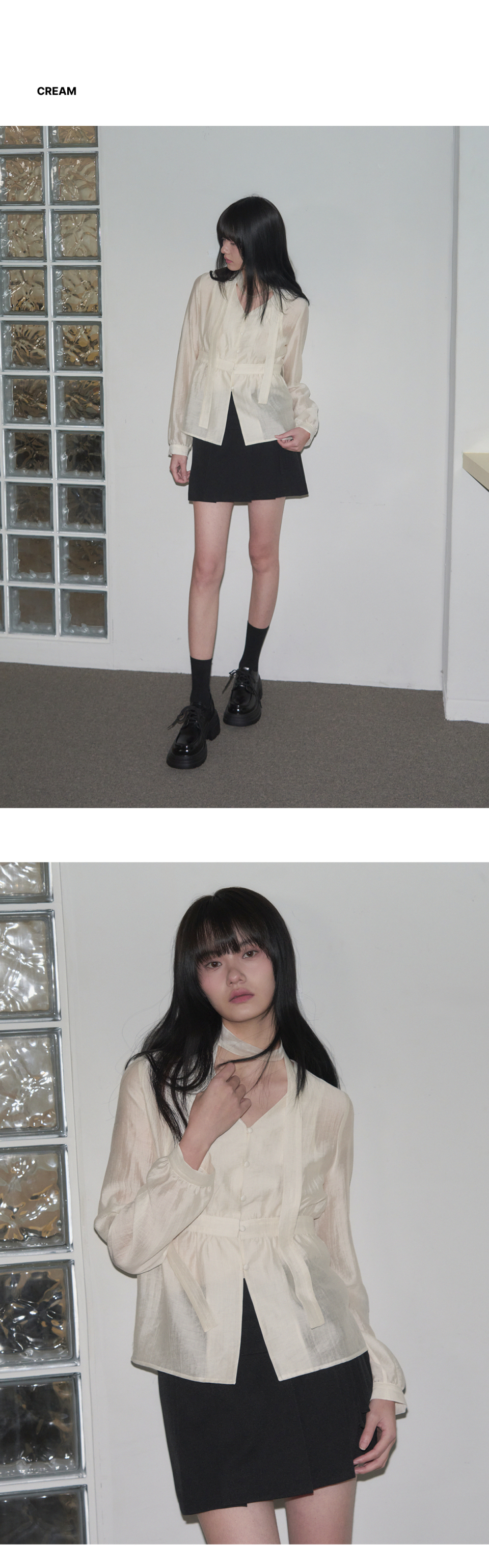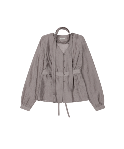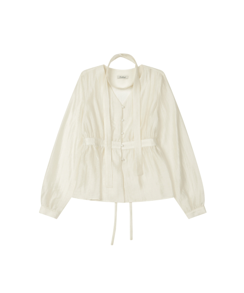 셔링 브이넥 머플러 블라우스 [CREAM]