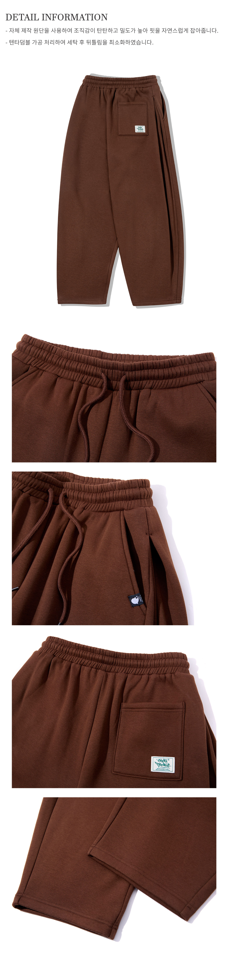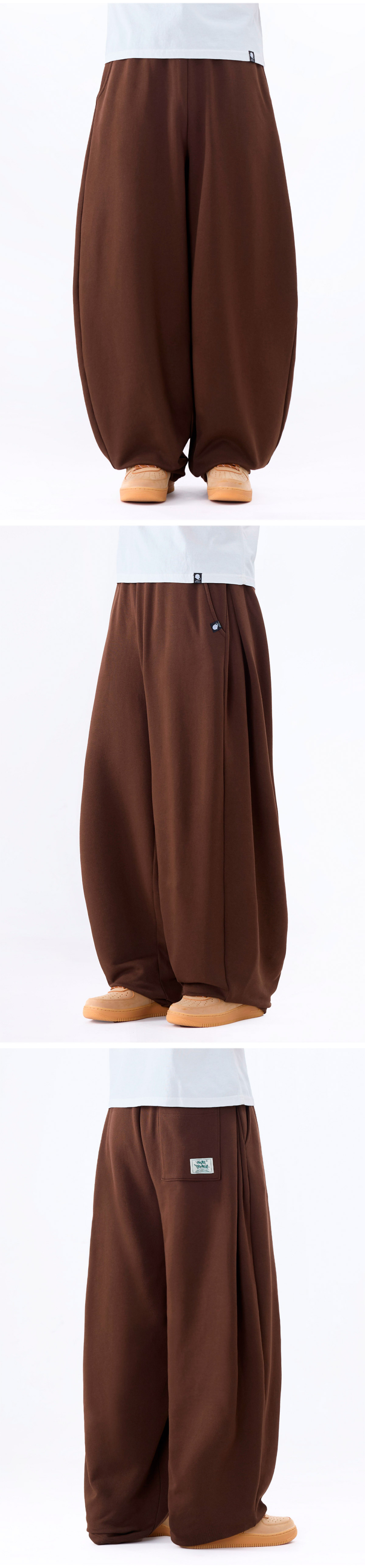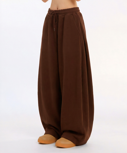 커브드 사이드 핀턱 벌룬 스웨트팬츠 GLP-650_브라운