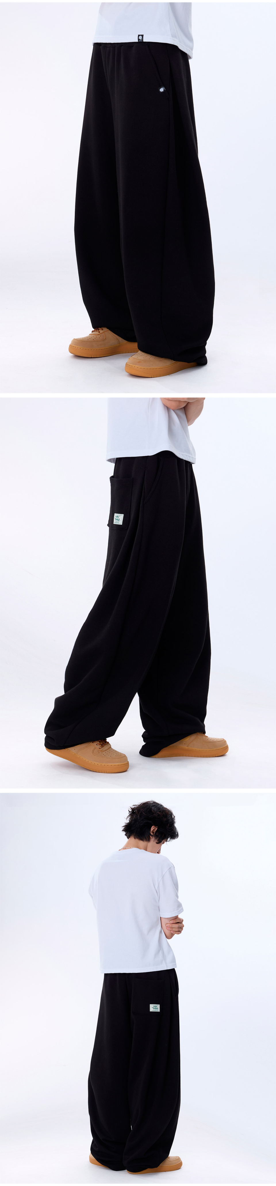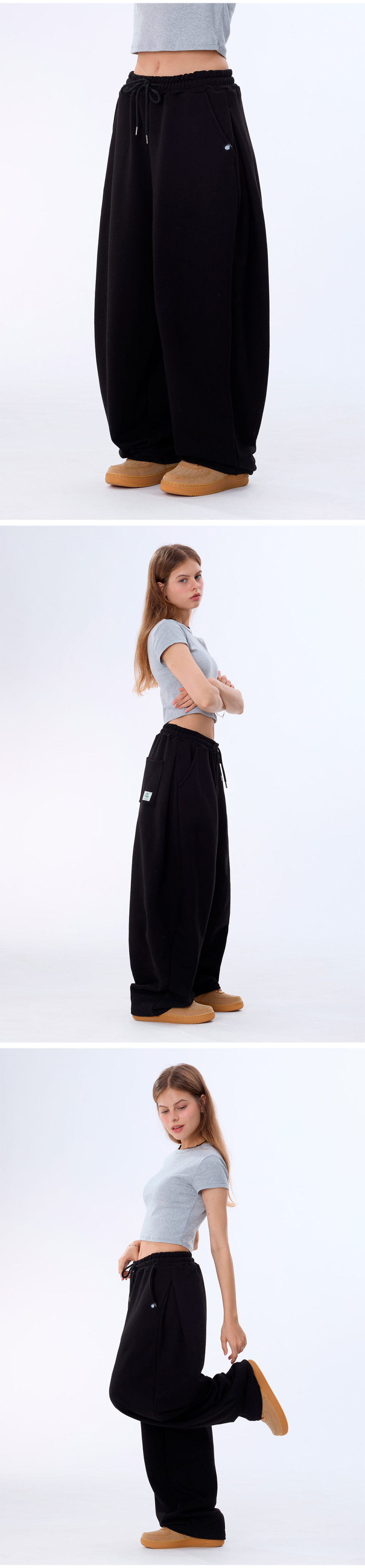 커브드 사이드 핀턱 벌룬 스웨트팬츠 GLP-650_블랙