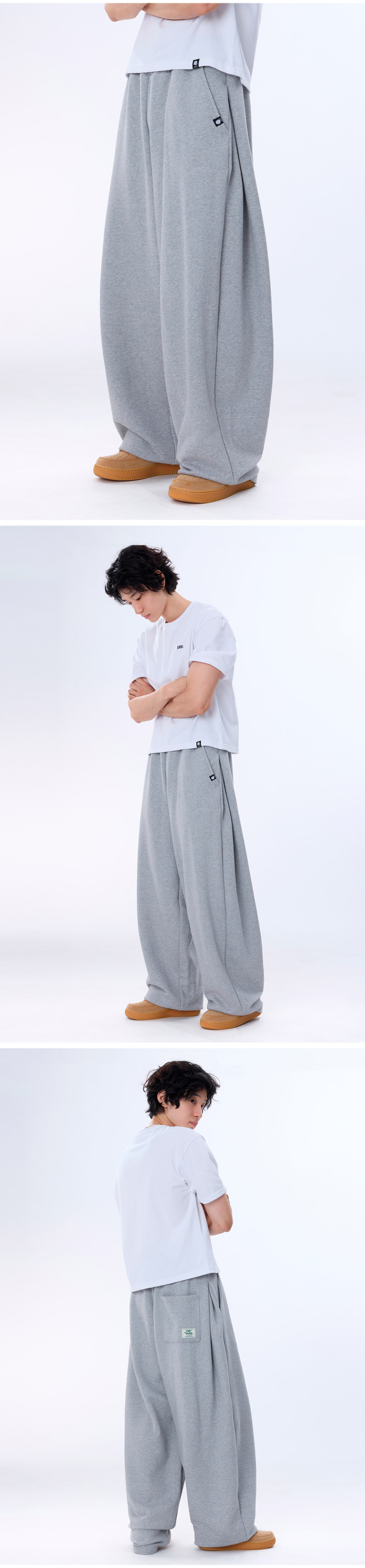 커브드 사이드 핀턱 벌룬 스웨트팬츠 GLP-650_그레이