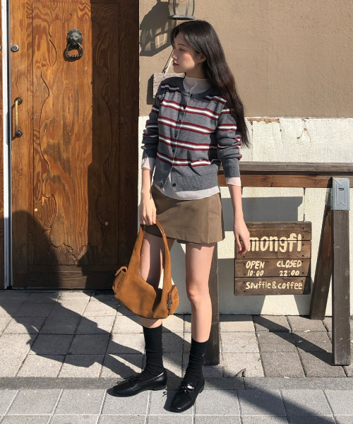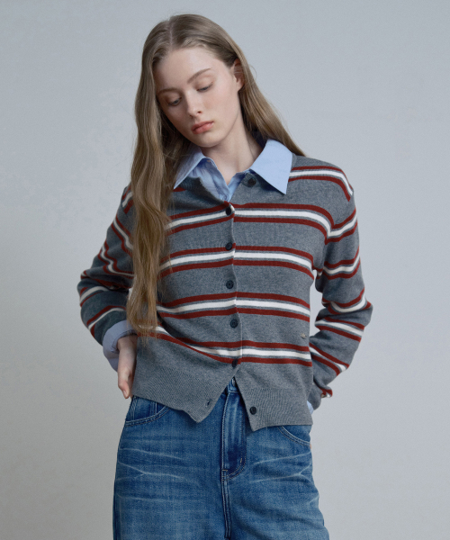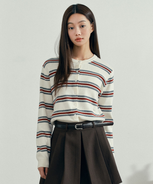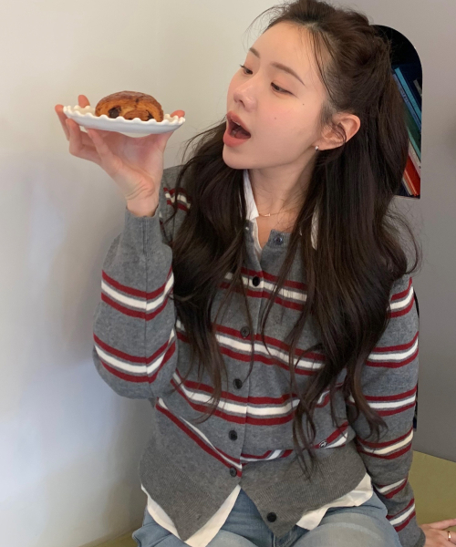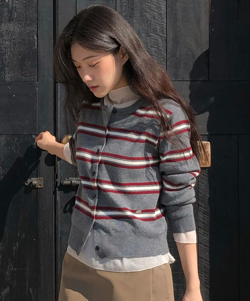 [W][ON]스트라이프 라운드넥 데일리 가디건 - 3color