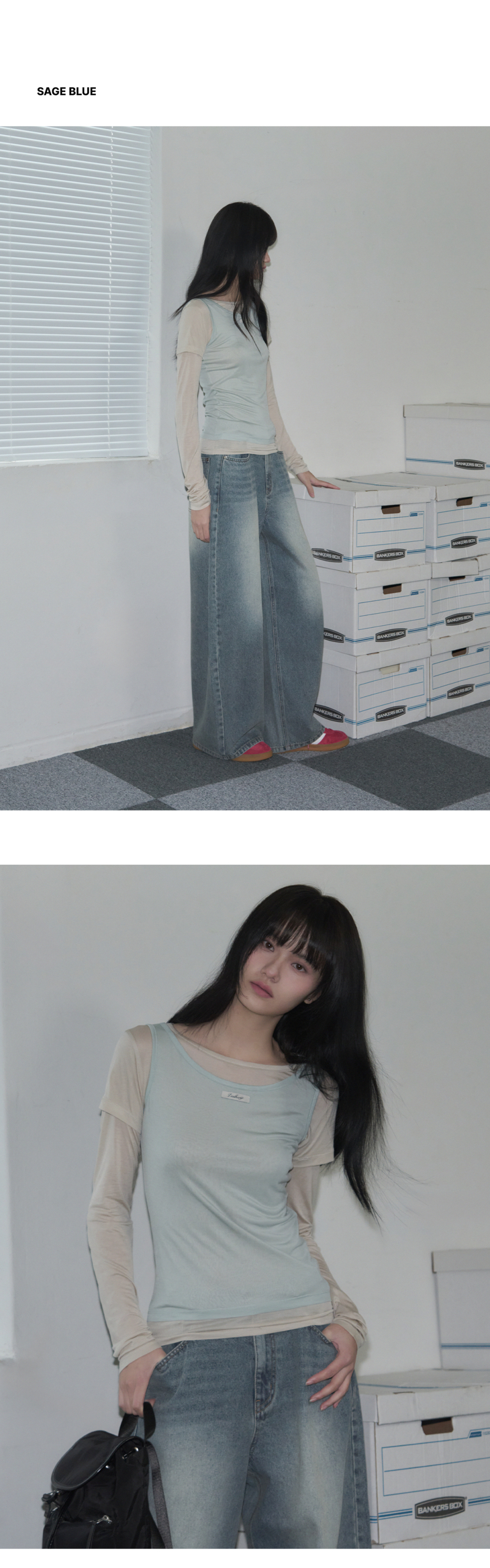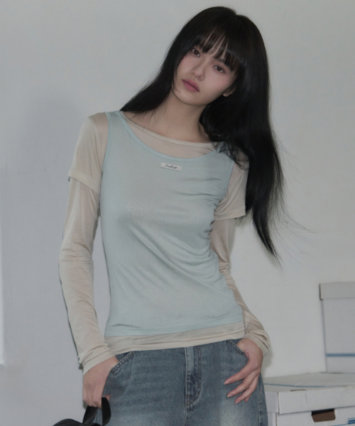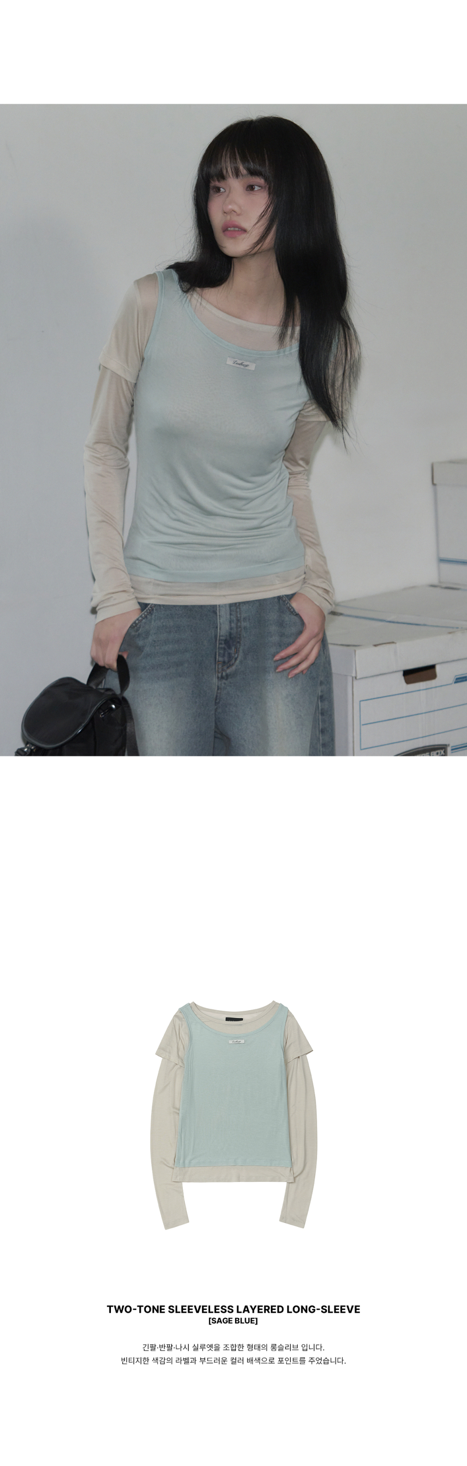 투톤 슬리브리스 레이어드 롱슬리브 [SAGE BLUE]