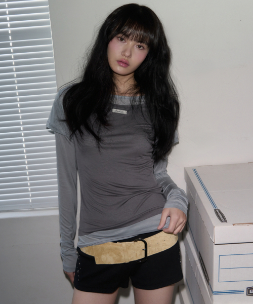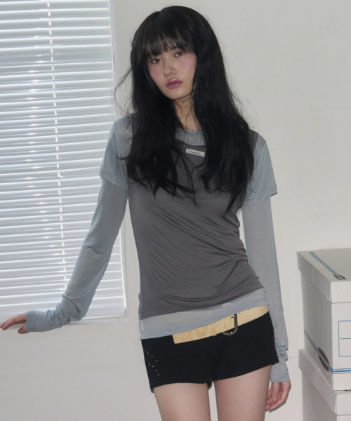 투톤 슬리브리스 레이어드 롱슬리브 [CHARCOAL]