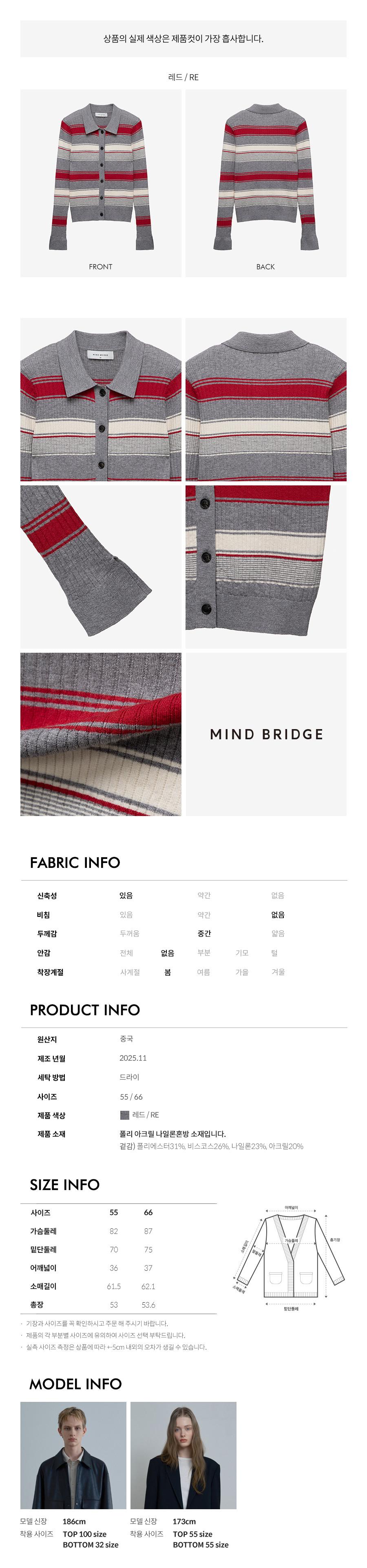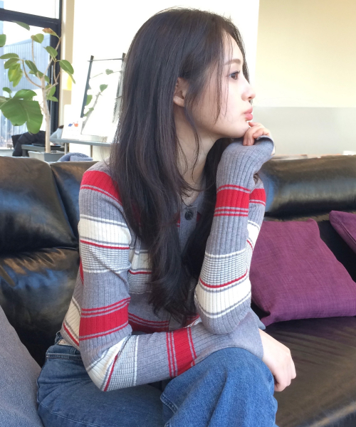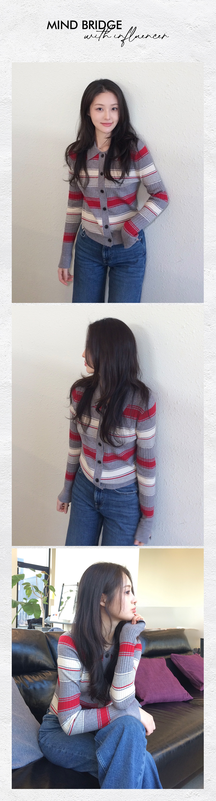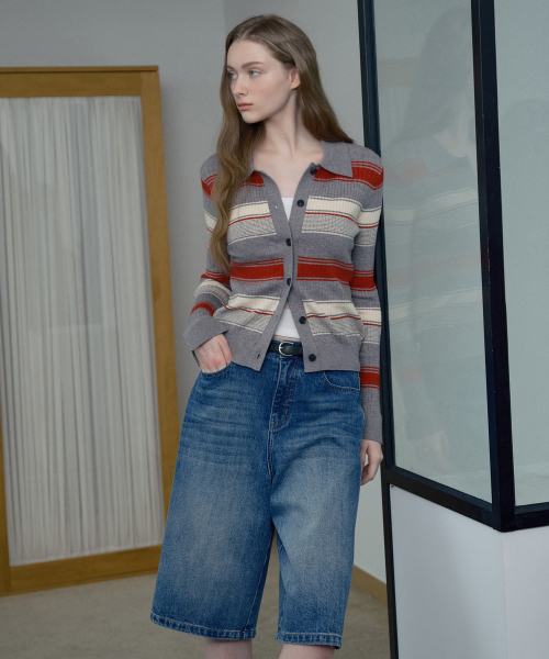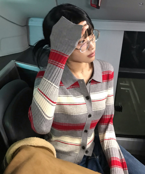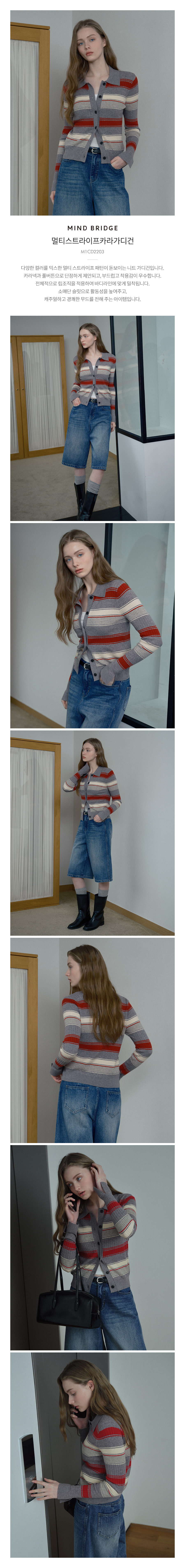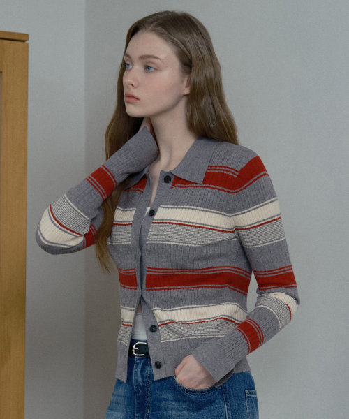 [W]멀티 스트라이프 카라 가디건
