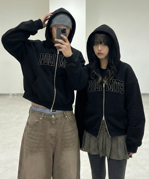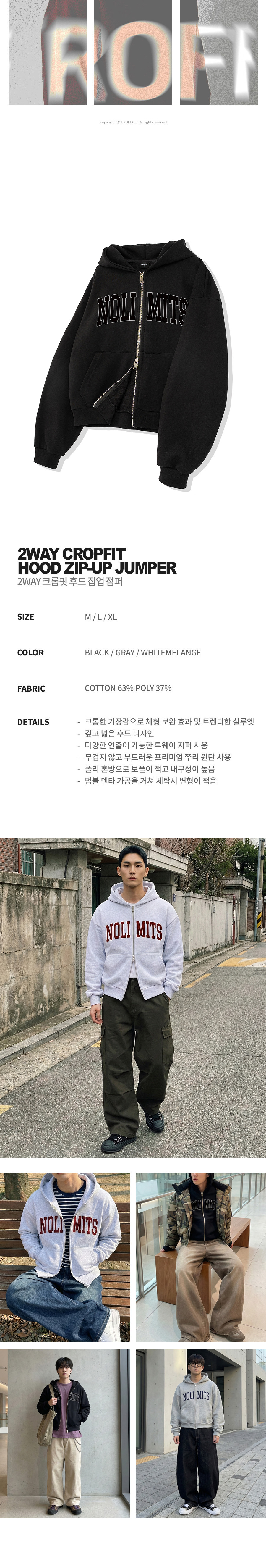 2way 크롭핏 노리미트 후드 집업 블랙 기모선택