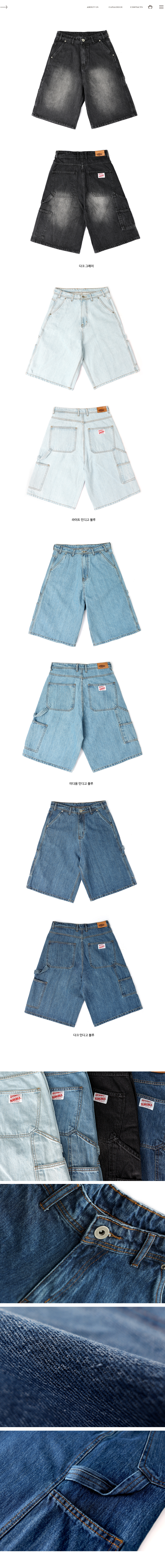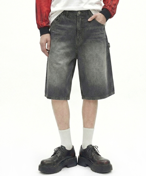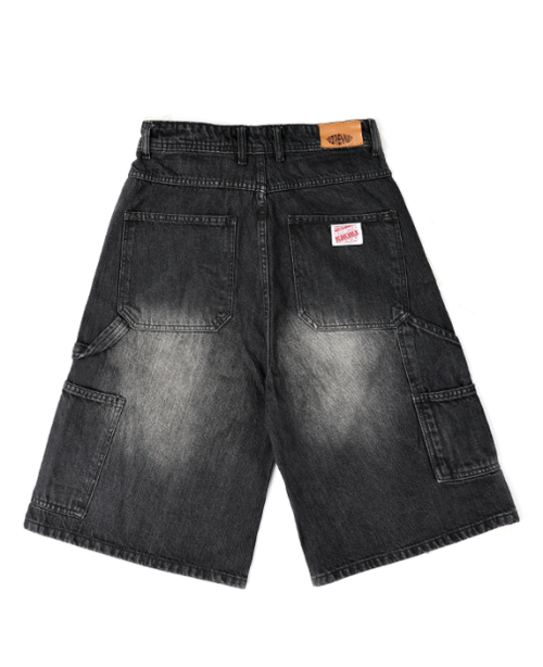 키스 버뮤다핏 오버사이즈 카고 데님쇼츠 다크그레이