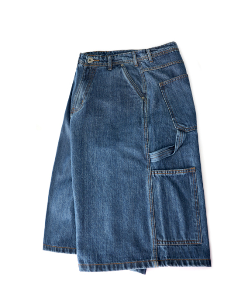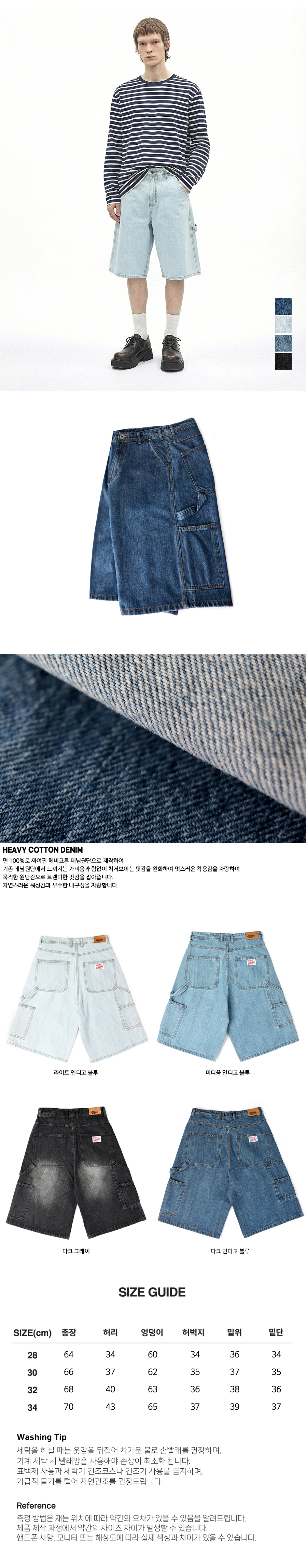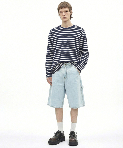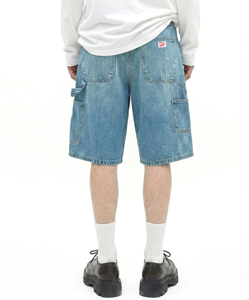 키스 버뮤다핏 오버사이즈 카고 데님쇼츠 미디움인디고블루