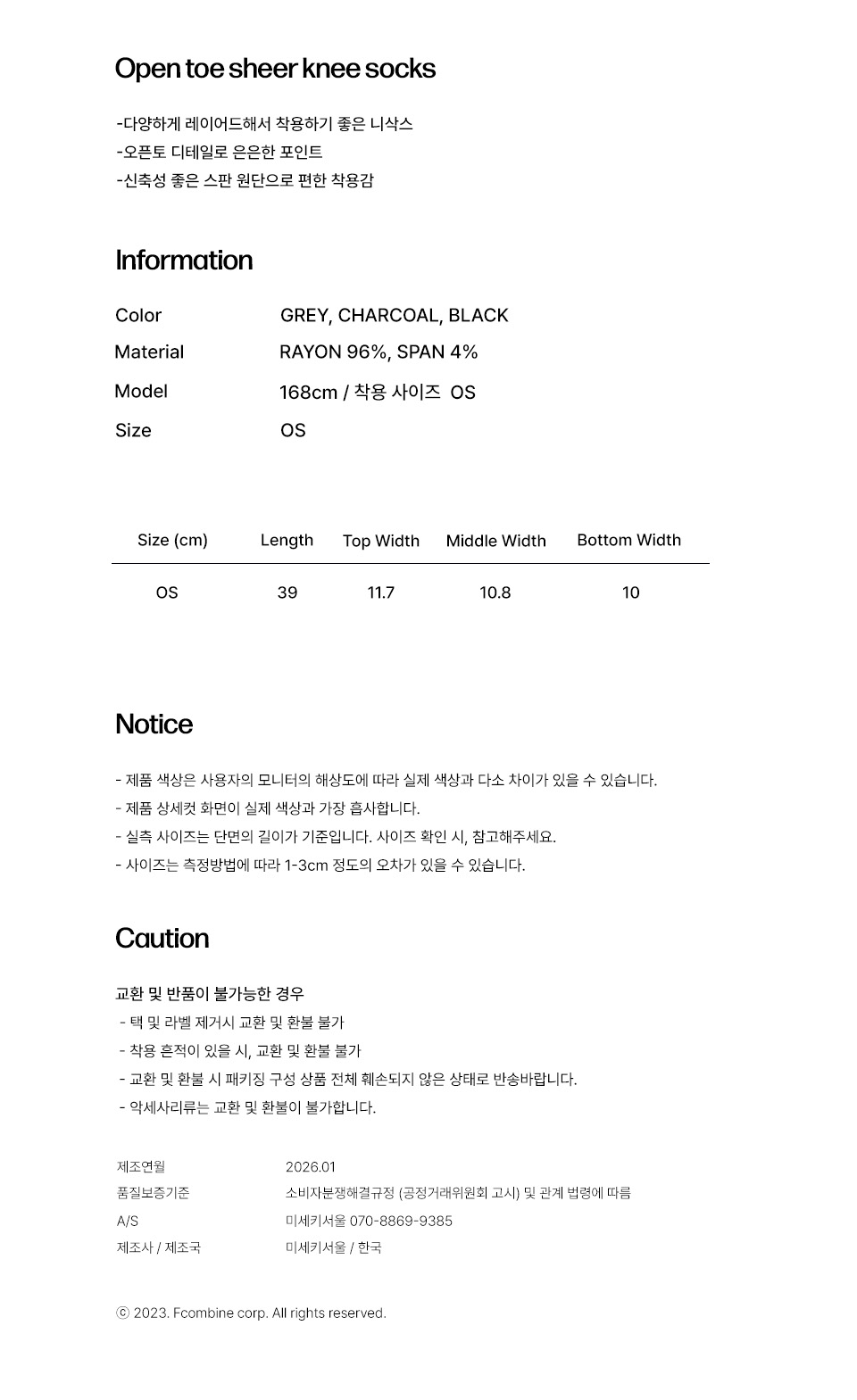 [레이 PICK] Open toe sheer knee socks CHARCOAL