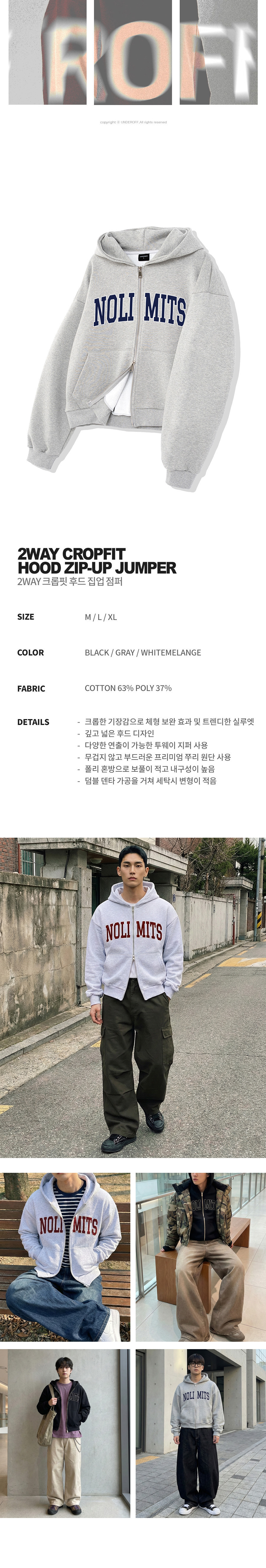 2way 크롭핏 노리미트 후드 집업 그레이 기모선택