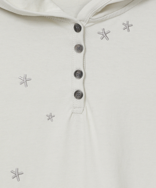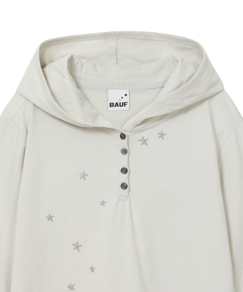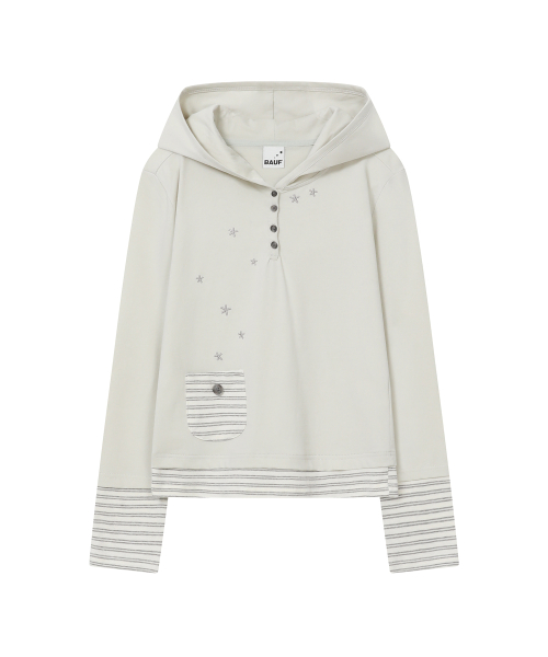 엔젤 자수패치 하이넥 오버핏 후드집업 아이보리