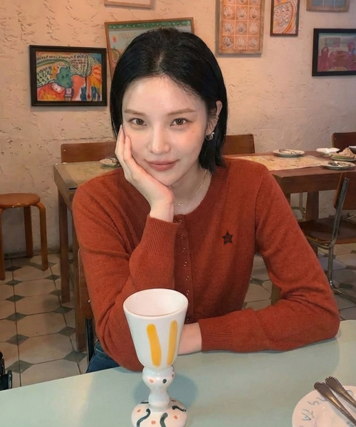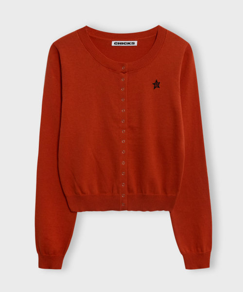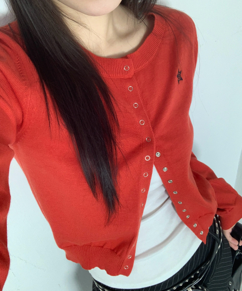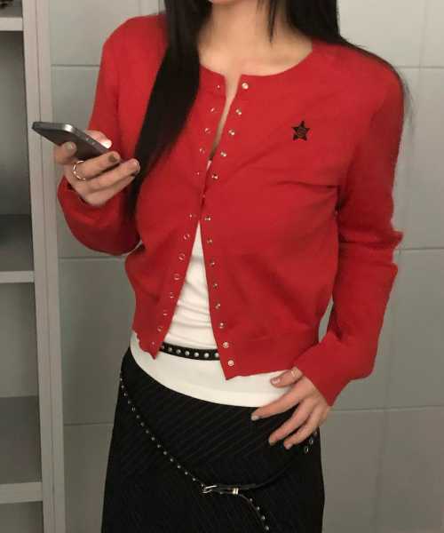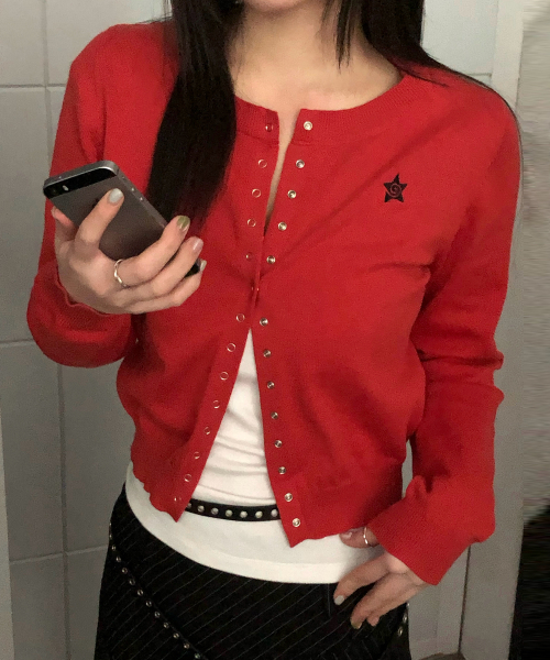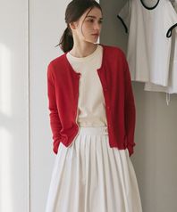 라운드넥 가디건 레드