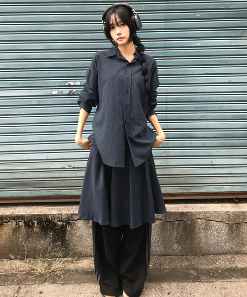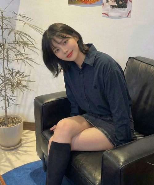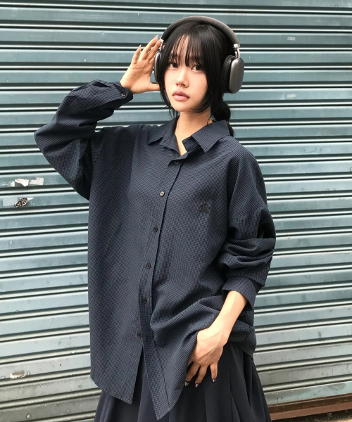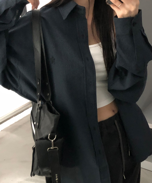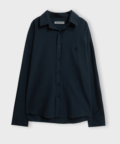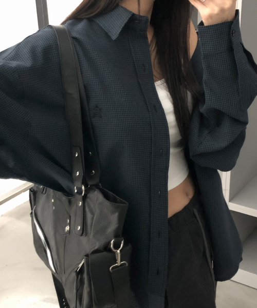 마이크로 체크 오버핏 셔츠 네이비