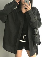 마이크로 체크 오버핏 셔츠 차콜