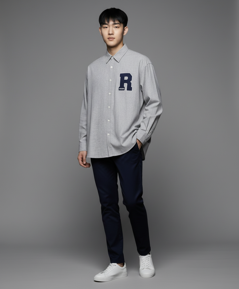 R로고 아플리케 옥스포드 오버셔츠(블랙) L