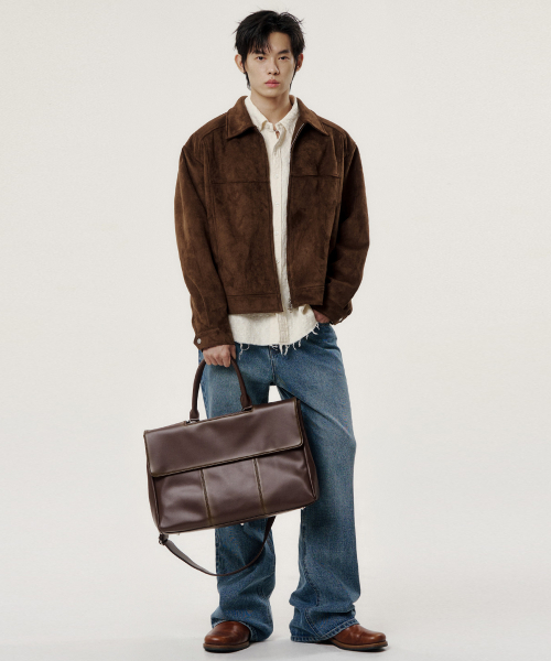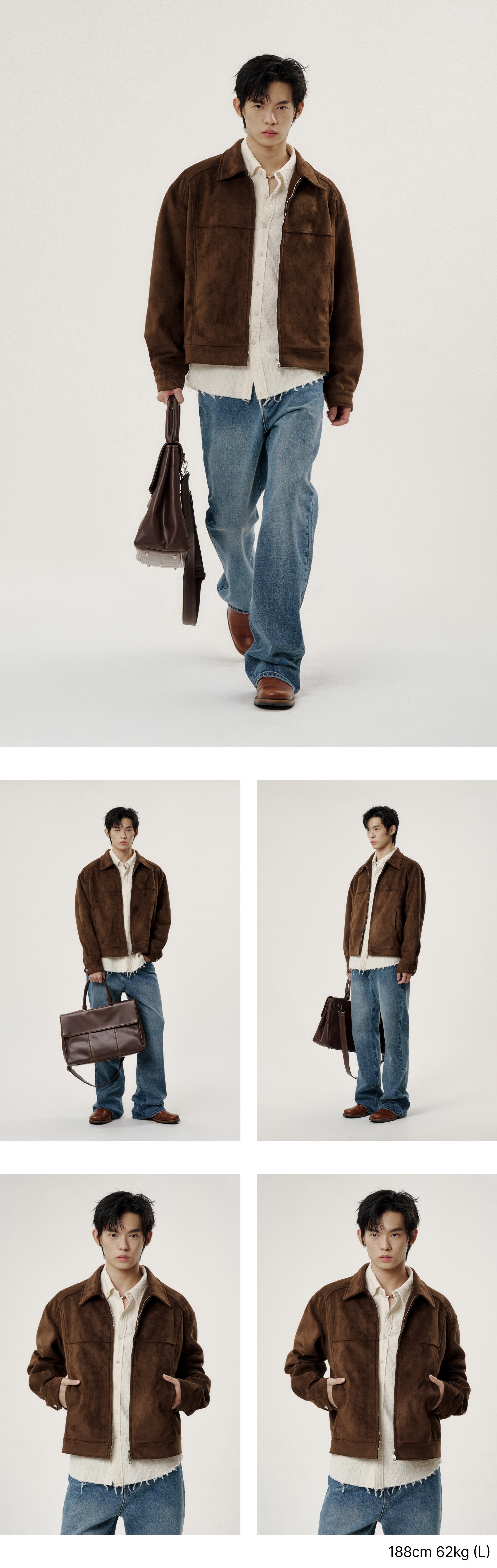 신세틱 스웨이드 투웨이 싱글 자켓 - 브라운