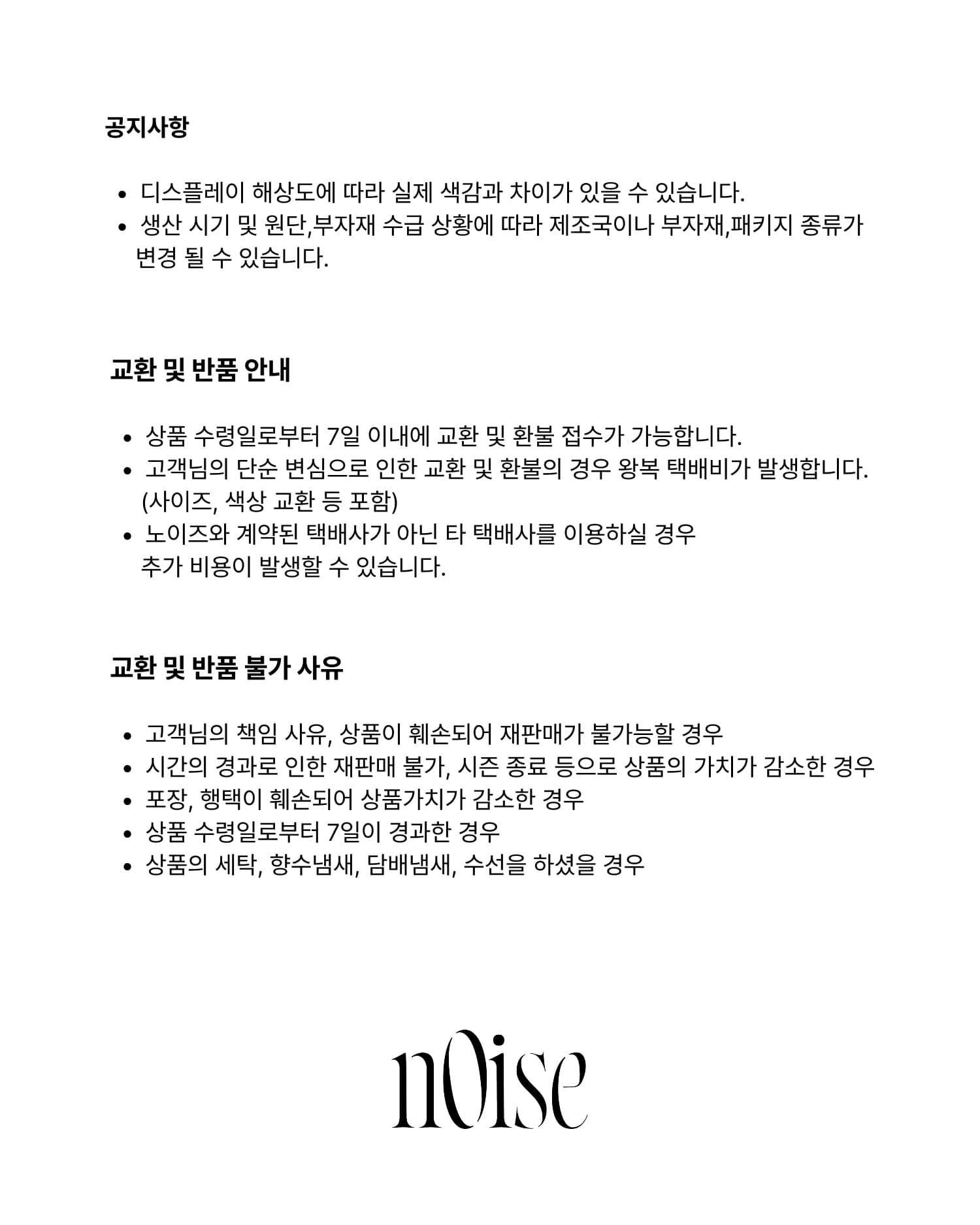 노이즈(NOISE)는 도시 속에서 발생하는 소음과 자연에서 나타나는 고요한 현상을 패셔너블한 무드로 표현하고 재해석하는 브랜드입니다.