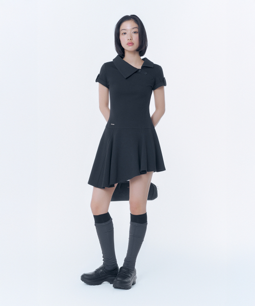 Slash button flare one piece BLACK
