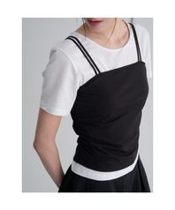 Bustier Layered T-Shirt (FL-122_Black&Charcoal)