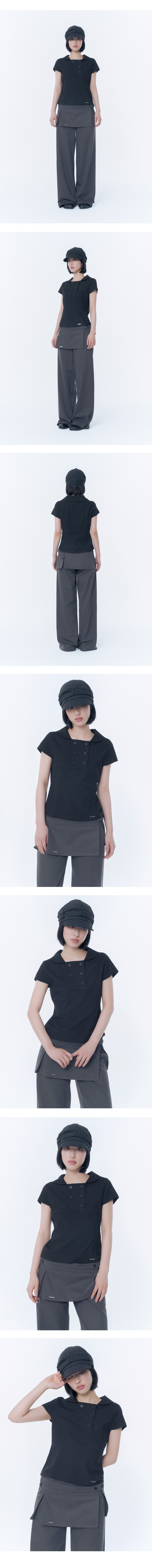 [레이 PICK] String shirring short sleeve CHARCOAL
