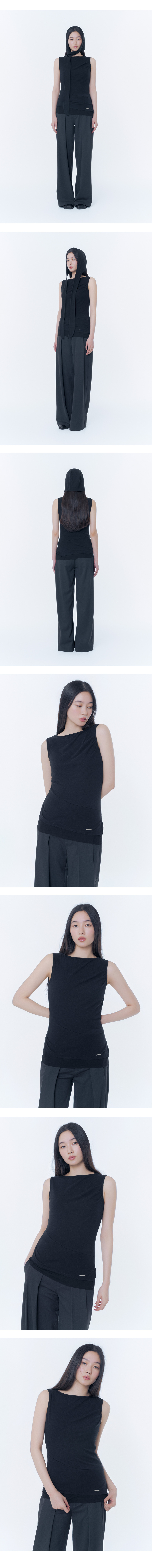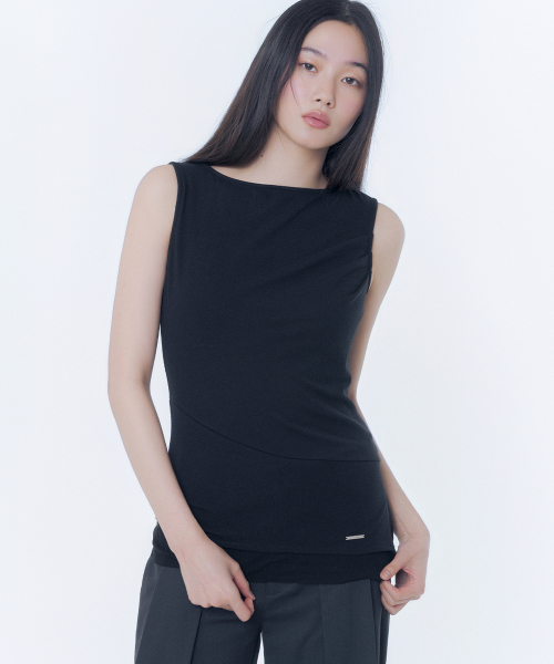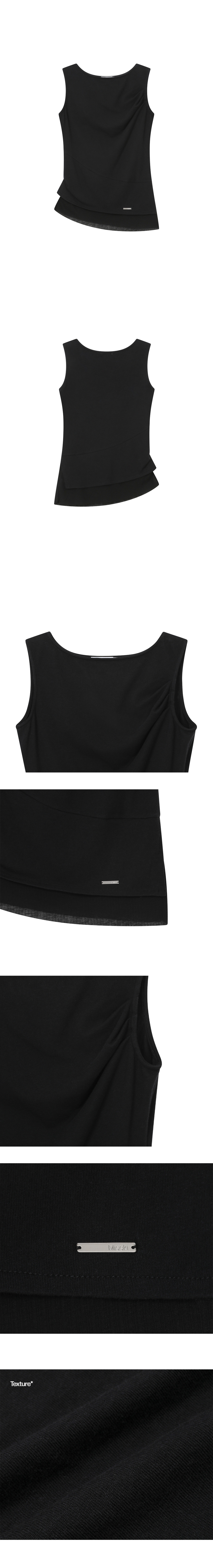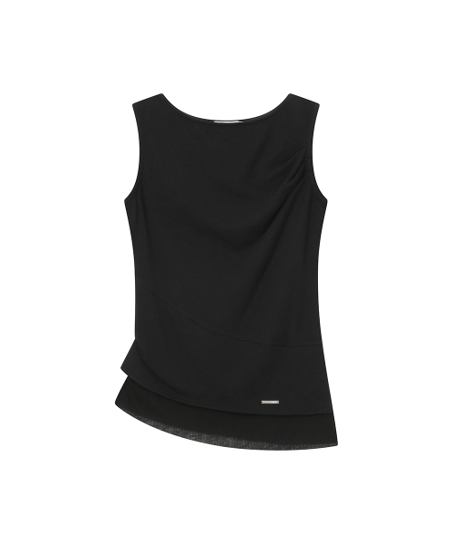Unbalanced sheer layered sleeveless BLACK