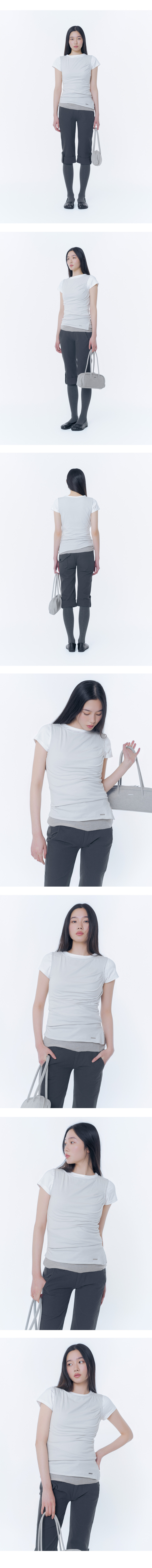 [레이 PICK] String shirring short sleeve CHARCOAL