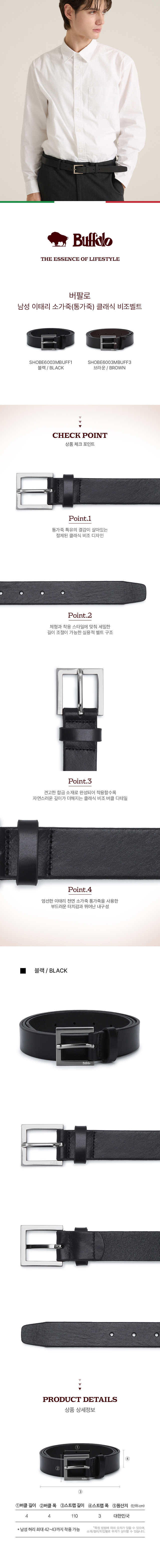 버팔로 남성 이태리 소가죽(통가죽) 클래식 비조벨트 SHOBE6003MBUFF3