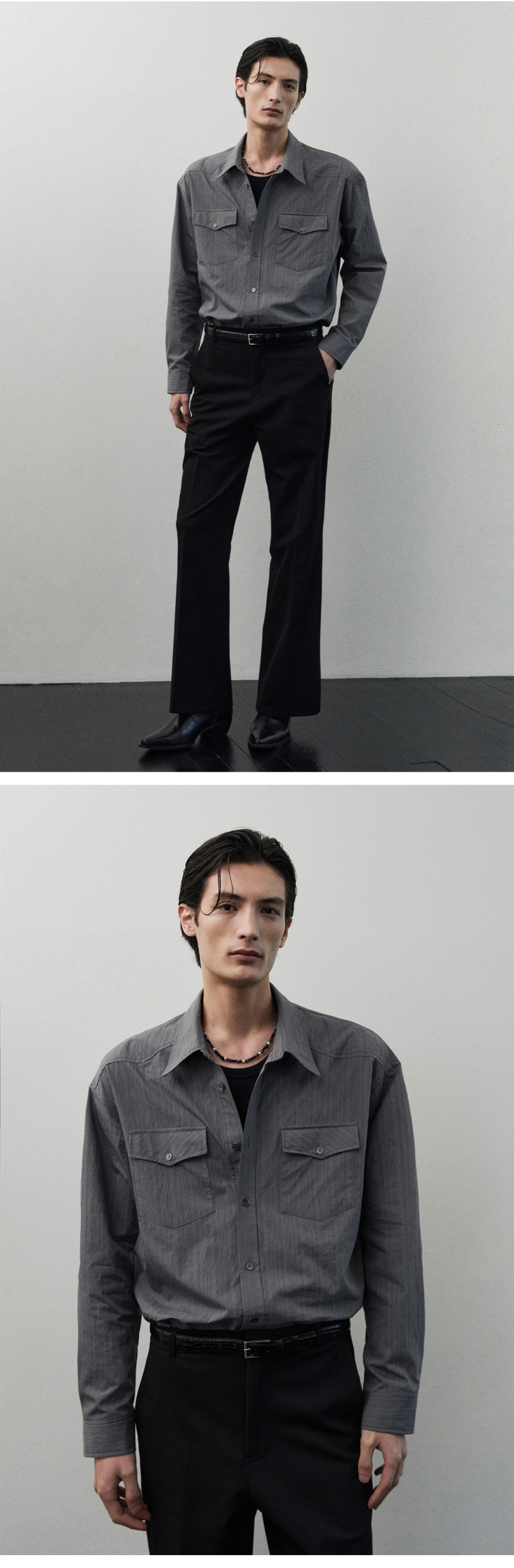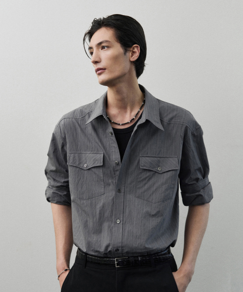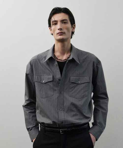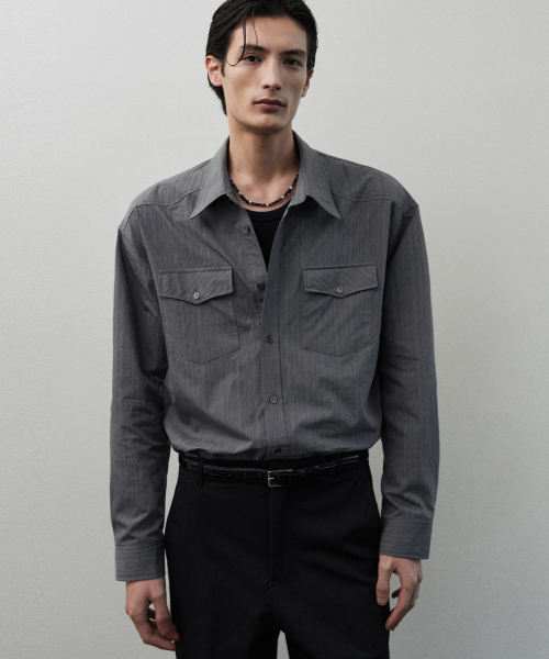 카프카 웨스턴 스트라이프 셔츠 [GREY]