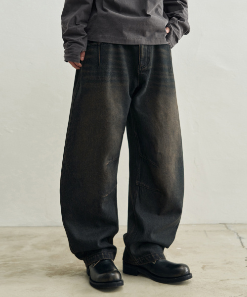 [패플서 x 로템버] 워시드 커브드 와이드 데님 팬츠 [빈티지 인디고]