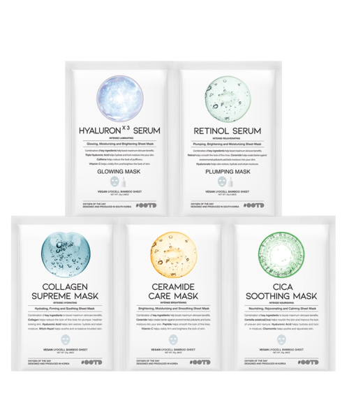 [5매입] 하이드레이팅 시트 마스크 5종 (히알루론/시카/레티놀/콜라겐/세라마이드)