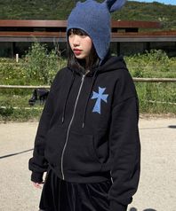 [UNISEX]DOT CROSS 자수 후드집업_2color