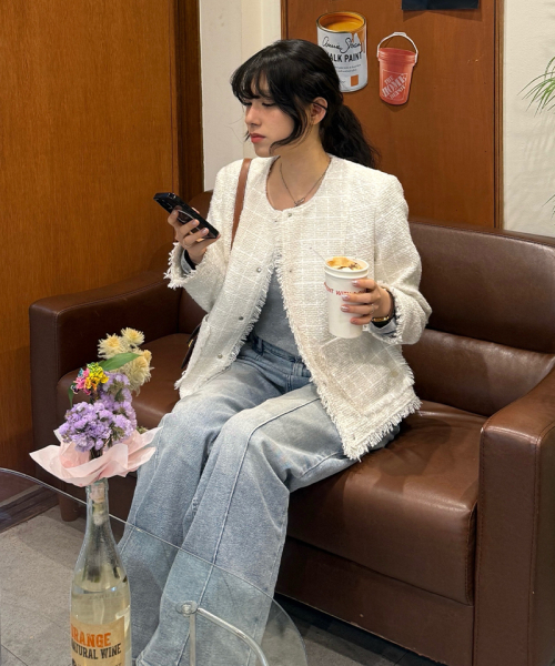 포켓 포인트 트위드 자켓(MAGAJK05MIV)