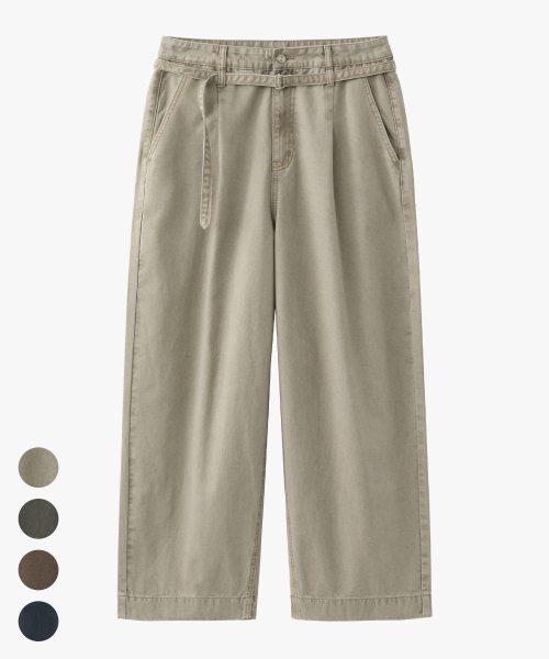 더블 벨트 와이드 팬츠 - 4 COLOR