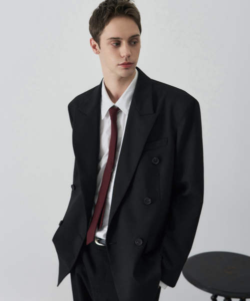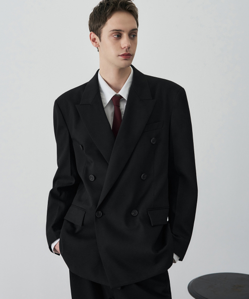 도브 울 테일러드 더블 블레이저 [BLACK]
