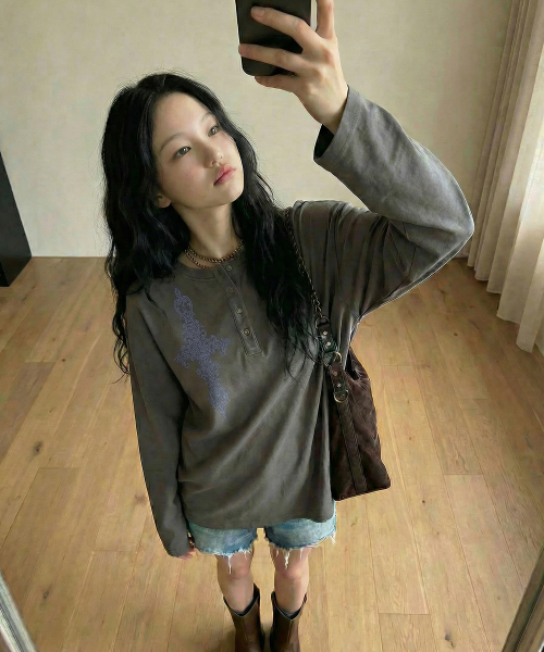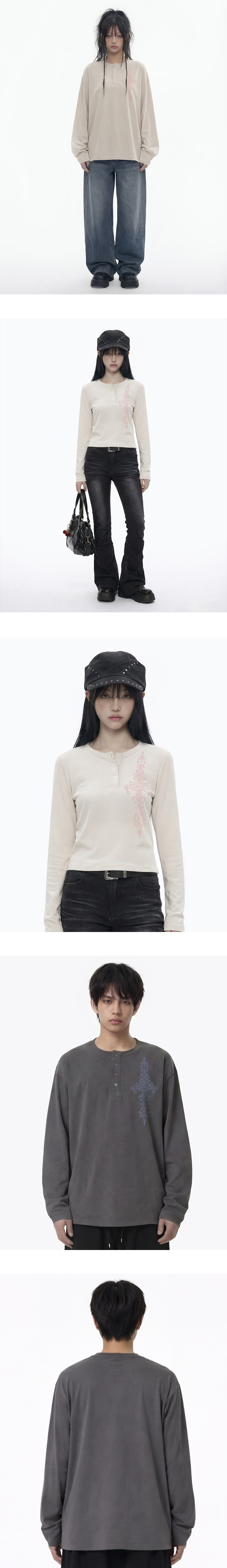 [UNISEX]SIM CROSS 헨리넥 롱슬리브 티셔츠_2color