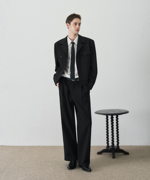 세미 와이드 히든 밴딩 슬랙스 [블랙]