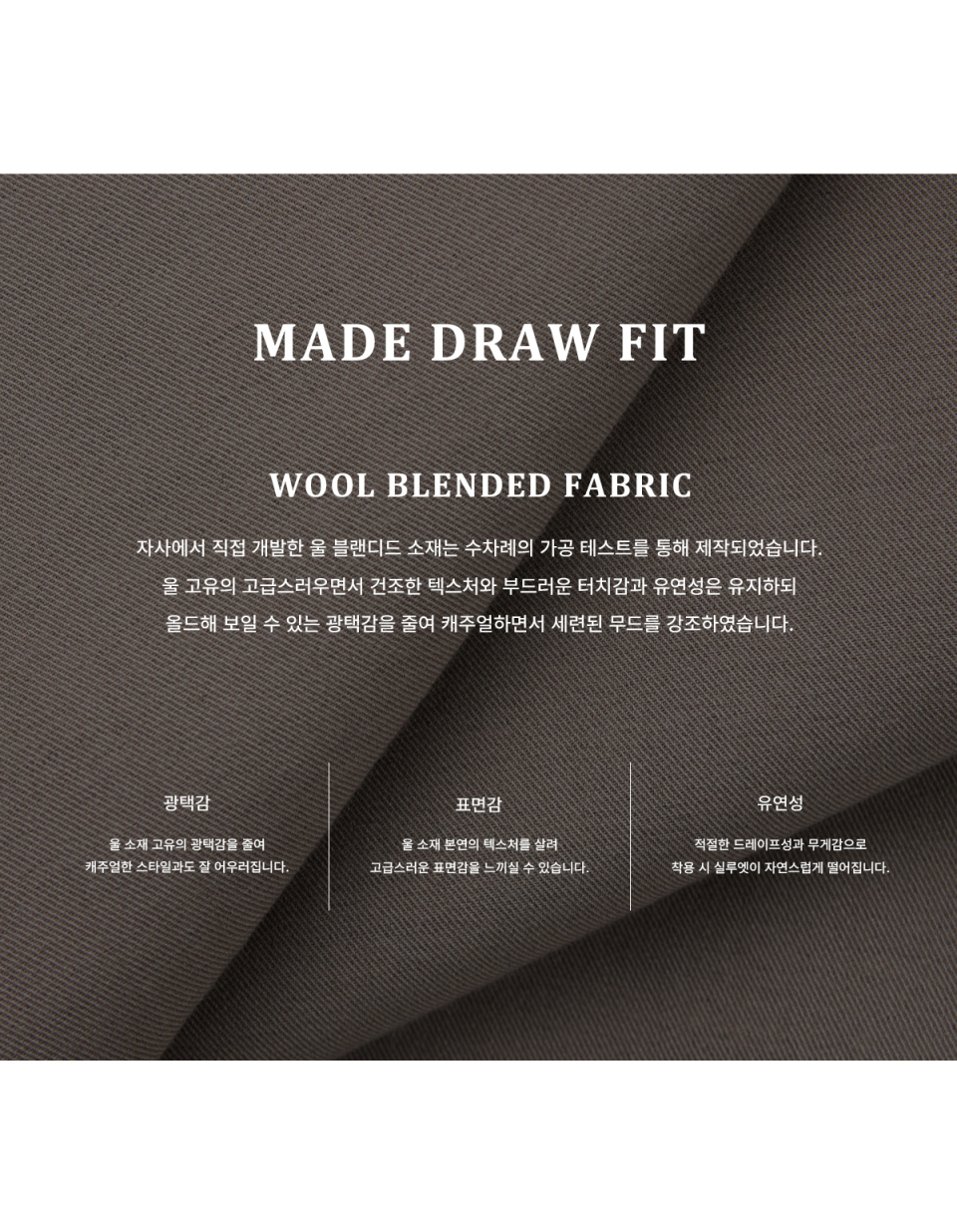 드로우핏(DRAW FIT)은 핏과 착용감을 중요하게 여기며 컨템포러리&모던 룩을 지향하는 브랜드입니다. 뛰어난 퀄리티의 좋은 소재를 다양하게 구성해 바느질까지 세심하게 신경 써서 완성하고 고유의 핏과 무드를 머금은 웨어러블한 디자인의 아이템을 합리적인 가격으로 소개합니다.